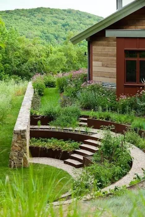 不管是植物的搭配或階梯式的小道