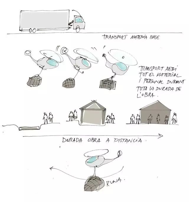 整個(gè)建筑空間注重特色與獨(dú)特性,因?yàn)榈貐^(qū)比較偏遠(yuǎn),只能運(yùn)用直升機(jī)來運(yùn)輸建筑材料,只能運(yùn)用一些輕質(zhì)的和預(yù)制材料。內(nèi)部空間的大部分元素選用的是預(yù)制的木質(zhì)材料,需要現(xiàn)場(chǎng)組裝完成。最終修建出的建筑,是傳統(tǒng)建筑高度的三倍,到建筑最終完成花費(fèi)了6個(gè)月。最終呈現(xiàn)的建筑,與原建筑幾乎做到了完全的分離。