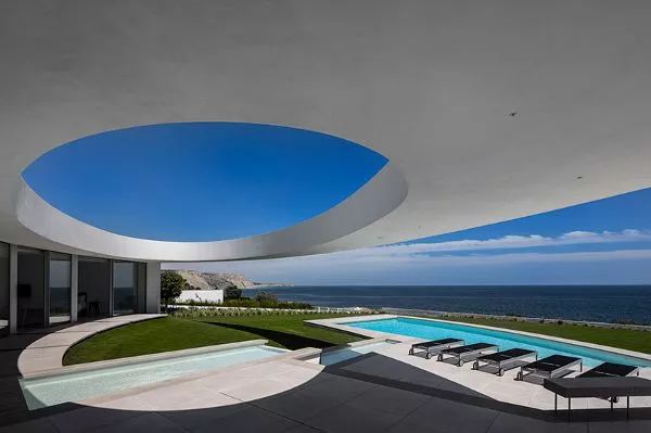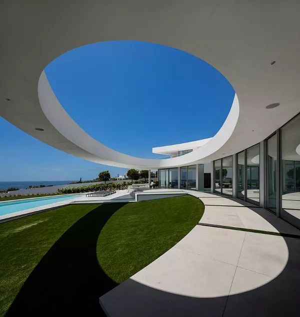 位于葡萄牙路斯的Elíptica別墅,場(chǎng)地地形自然傾斜。