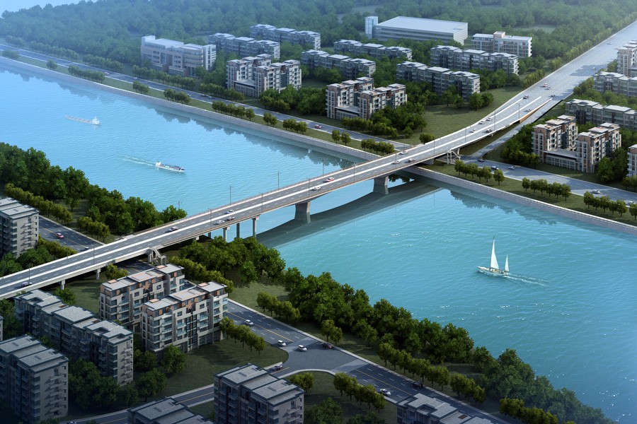 項(xiàng)目概況 :本項(xiàng)目為工業(yè)大道上跨越永樂江的路段,受工業(yè)大道整體線路的制約,因此線位確定。項(xiàng)目北起平康路與工業(yè)大道交叉口,向南依次跨越七一路、永樂江,濱江南路。推薦方案全長598.596m,推薦方案橋梁跨徑布置為(27+40+27)m現(xiàn)澆連續(xù)梁+(41+65+41)m懸澆連續(xù)梁+10x20m空心板,橋梁長447.64m,橋頭接線長150.956m。